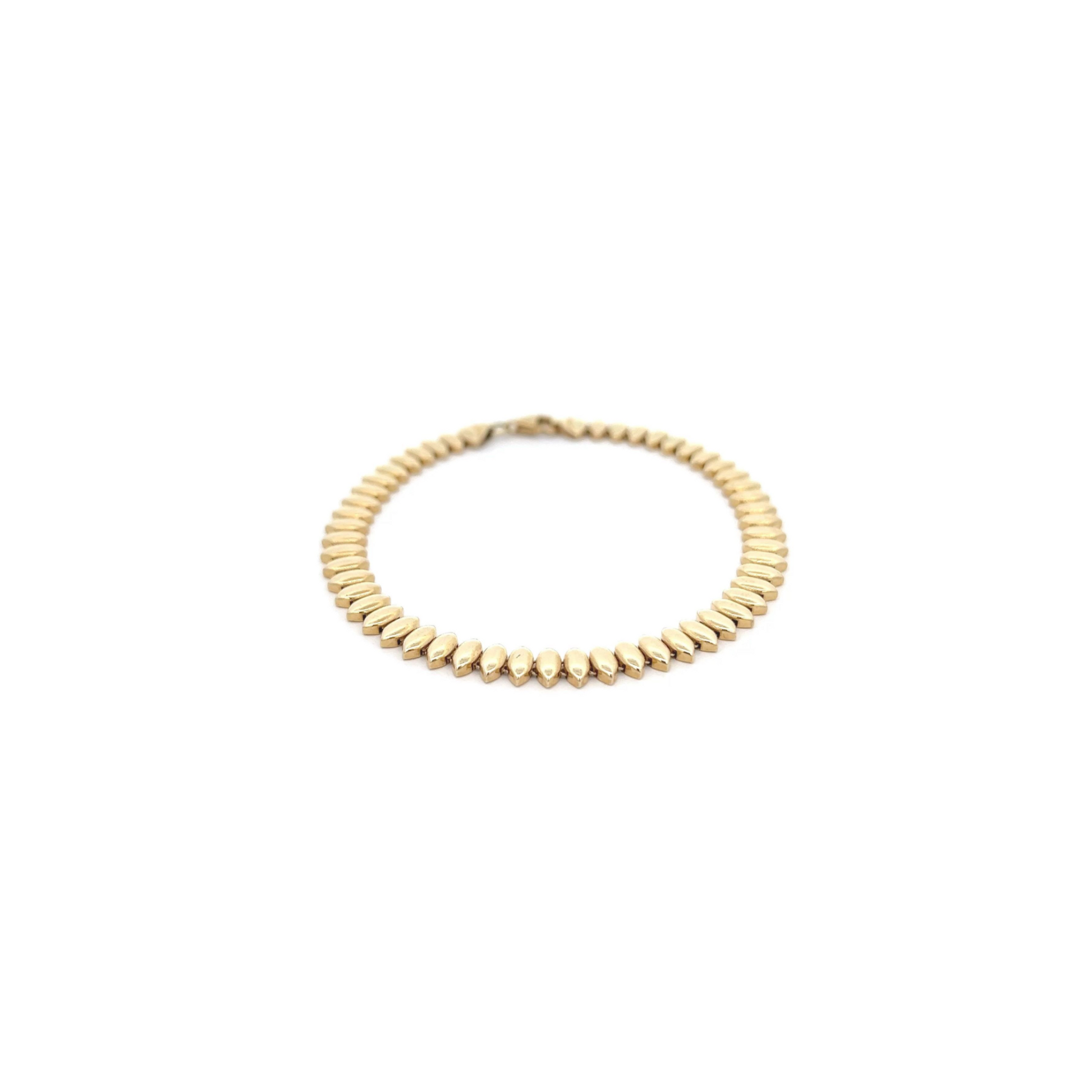 Make a bold statement with our 9ct Yellow Gold Diamond Bar Bracelet. This striking 6.1mm wide bracelet features a modern geometric design, showcasing interconnected diamond-shaped bars that create a captivating visual rhythm. Crafted in rich 9ct yellow gold, the sharp lines and polished surfaces exude contemporary elegance, making it a perfect addition to any modern jewellery collection.