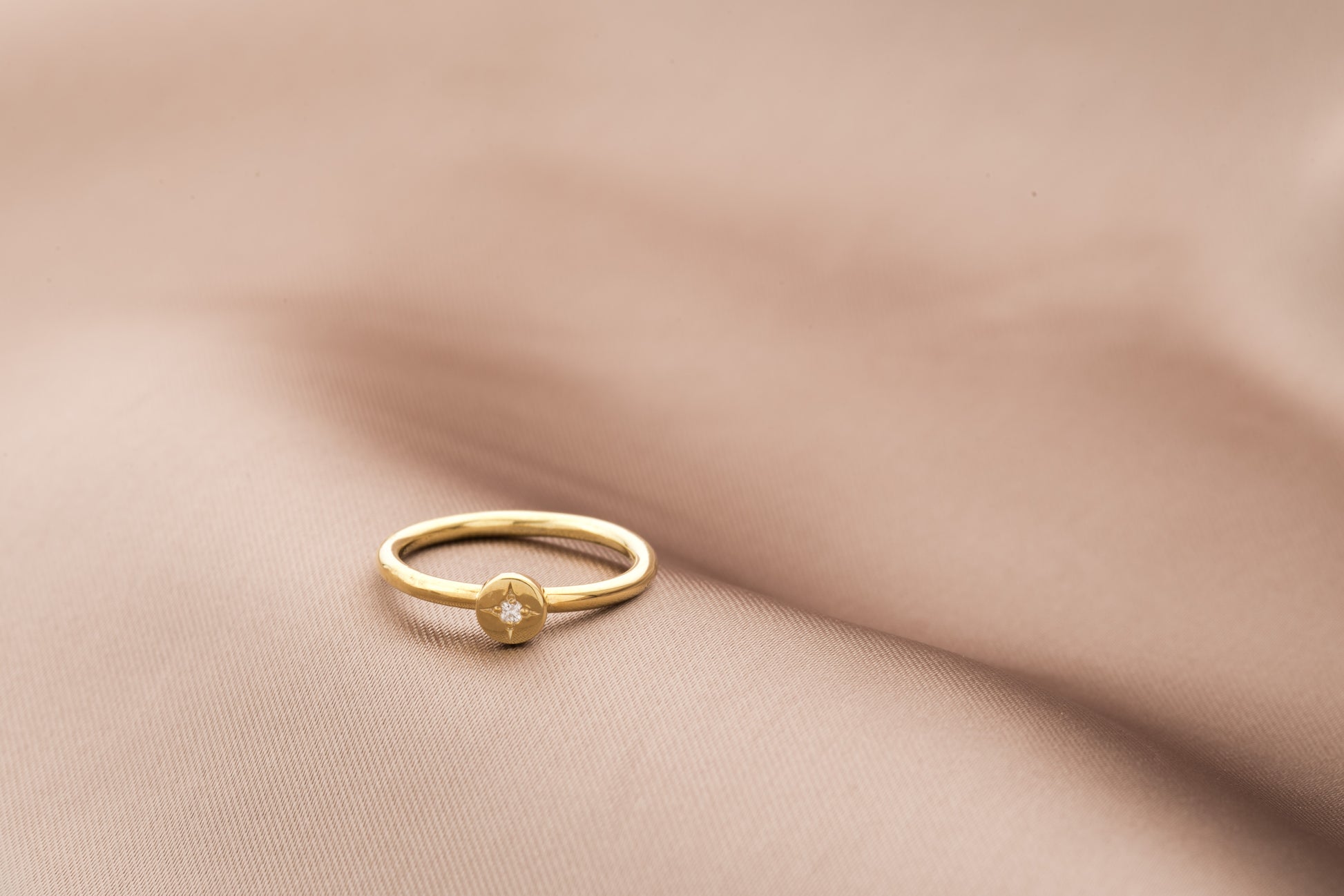 lluminate your stack with our Starry Diamond Stacking Signet Ring. This delicate ring features a single, brilliant 1mm round cut diamond, set to sparkle like a tiny star. Designed to be a key piece in your stacking ring collection, it adds a touch of celestial charm and can also be worn elegantly on its own.